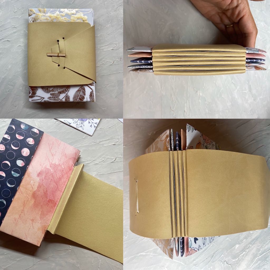Yo me he entretenido mucho haciendo un video donde te explico con cuidadoso detalle cómo elaborar este tipo de encuadernación con acordeón. Y te enseño que puedes usar papel, o eco piel y darle a tus álbumes un estilo diferente.